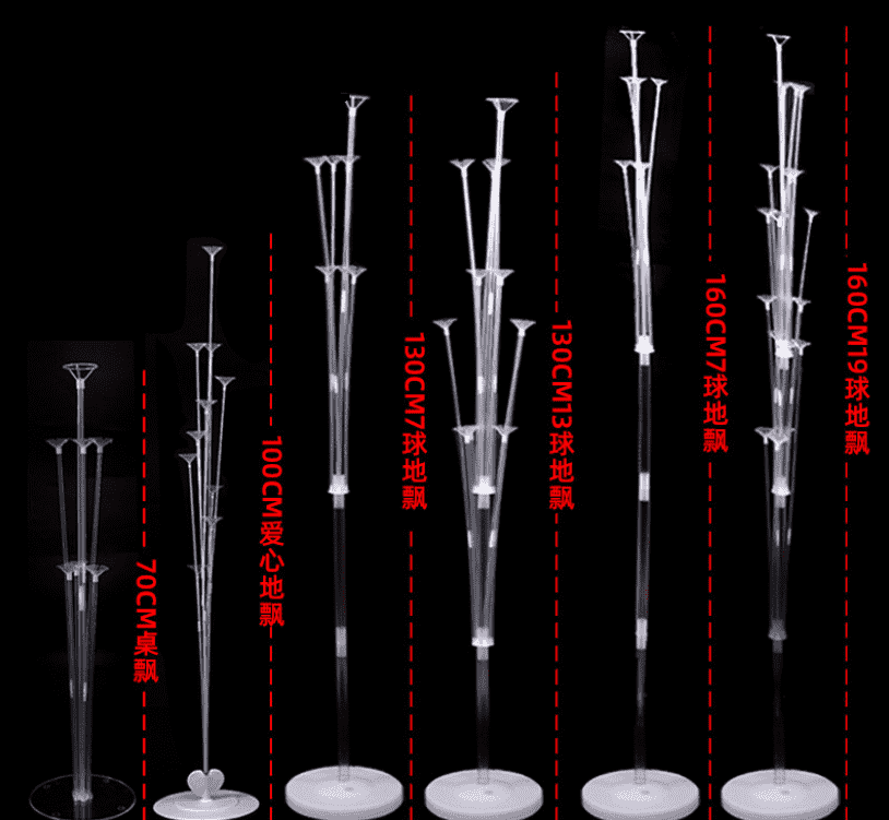 Il est composé de trois parties : une base, un poteau vertical et un piston. La base a deux styles, la base ordinaire et la base à injection d'eau. La base d'injection d'eau a une plus grande stabilité. Le poids de l'eau alourdit la base pour éviter que le support ne tombe sous l'action du vent ou d'une force extérieure. Il y a plusieurs vérins uniformément répartis sur le poteau vertical, ce qui est pratique pour insérer des supports de ballons de différentes hauteurs et fixer fermement le ballon sur le piston, créer un effet d'arbre de ballon hiérarchique, une belle décoration et peut ajuster la disposition du ballon à volonté, plus de flexibilité. Couramment utilisé dans les centres commerciaux, les fêtes et autres occasions de décoration.
