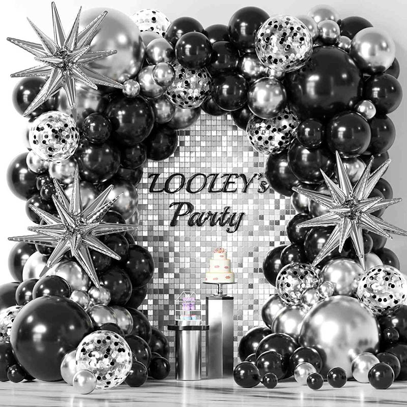 Dans l’ensemble, le noir et l’argent ensemble signifient associer la raison et le rêve. Ils sont calmes mais présentent de jolis reflets. Ils ne sont pas tape-à-l’œil mais dégagent une impression de fantaisie. Le kit guirlande de ballons noir et argent ne sont pas que des décorations. Ils montrent aussi une sorte de style. Ils peuvent transmettre de l’élégance, une ambiance moderne et de la force dans n’importe quel endroit. Ils ajoutent une belle ambiance cérémonielle à l’événement. Ils conviennent aux mariages romantiques, aux soirées à la mode ou aux événements d'entreprise. Les kits de guirlandes de ballons d'anniversaire noirs et argentés peuvent être le point central avec leur charme particulier. Ils font que chaque invité ressent une expérience de célébration unique.