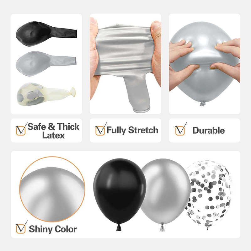 1. Échantillon gratuit de kits de guirlande de ballons noirs et argentés.