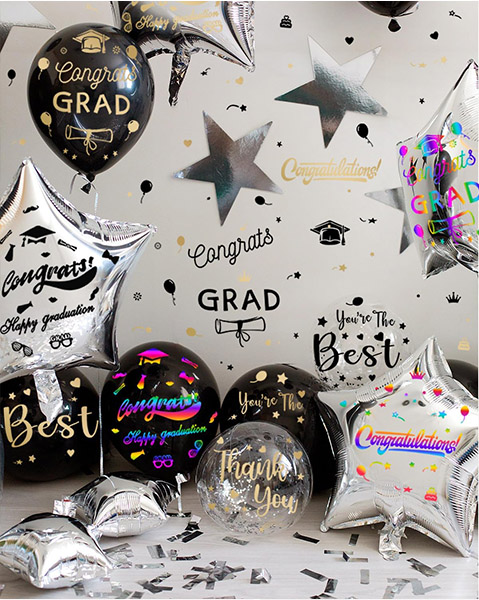Nos autocollants ballons « Happy Graduation » sont conçus pour rehausser l’atmosphère joyeuse des fêtes de remise des diplômes. Chaque autocollant comporte une phrase ou un motif de célébration qui fait écho à l'esprit de réussite. Utilisez ces autocollants pour créer des décorations uniques et capturer des photos inoubliables et des moments importants avec votre famille et vos amis.
