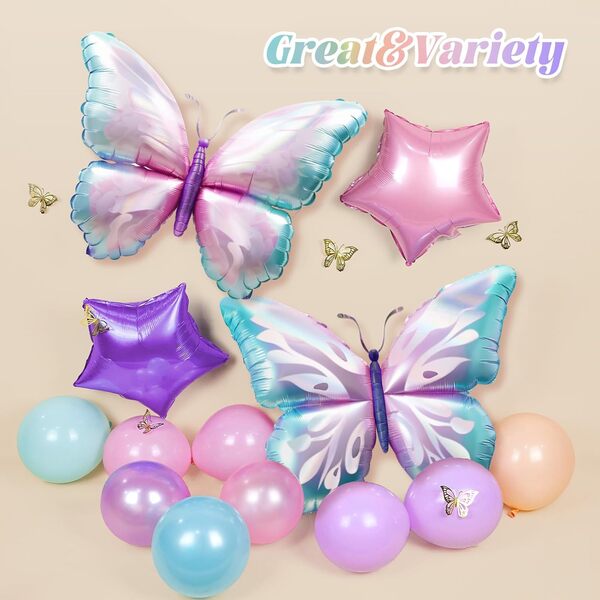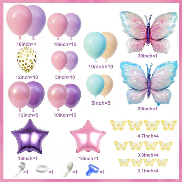 Kit d'arche de ballons papillon : le kit d'arche est coloré et accrocheur, il est composé de divers ballons en aluminium et ballons en latex. Lorsque vous le disposez, ajoutez un tableau de fond avec des motifs et du texte différent, puis entourez les ballons autour. C'est le créateur de l'ambiance de l'événement. Prendre des photos devant sera très beau.
