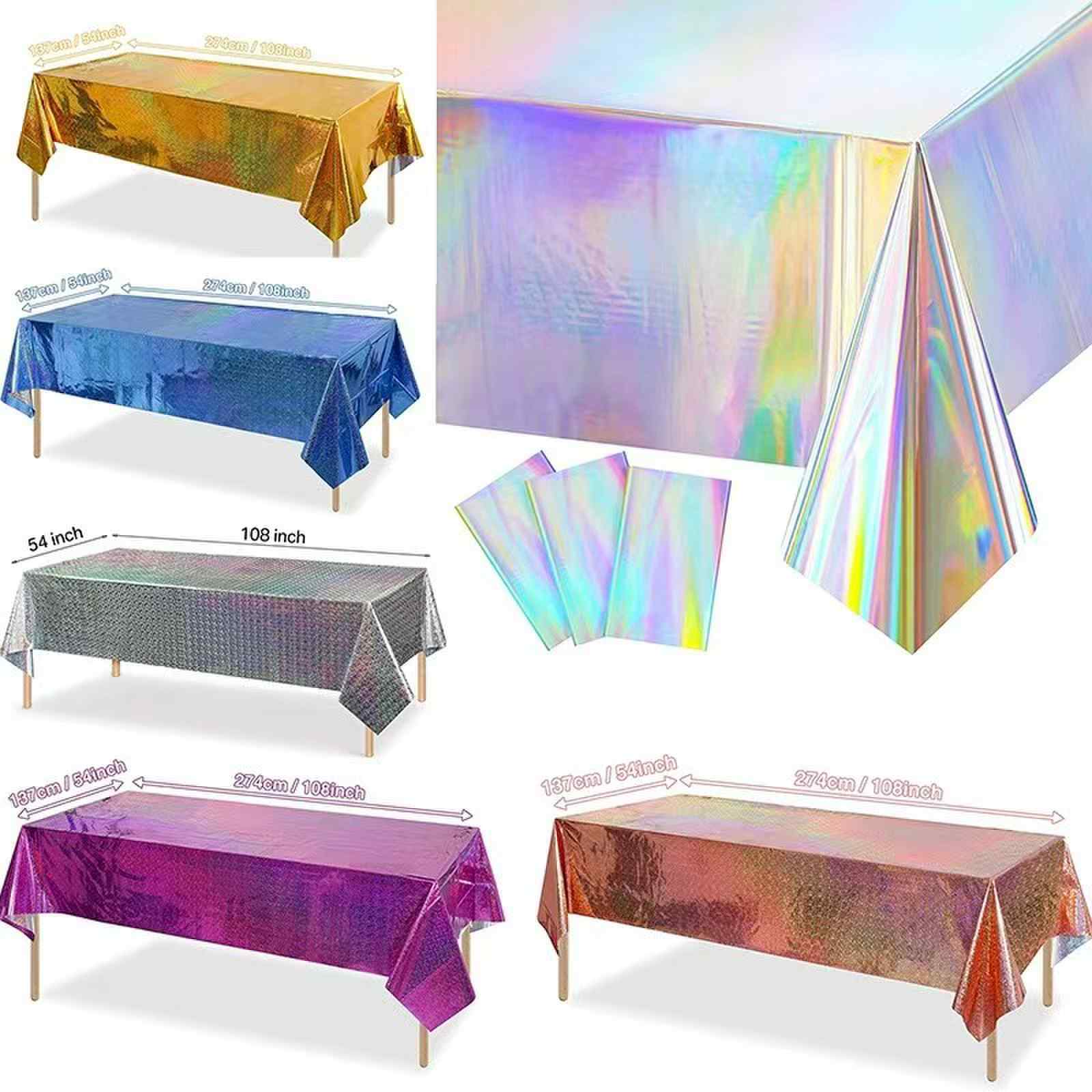 couleur arc-en-ciel, nappe en aluminium avec des animaux de dessins animés et des motifs de gâteaux, adaptée aux fêtes d'anniversaire d'enfants ; or, argent, couleur laser avec des motifs d'étoiles et de lettres, adaptés aux fêtes d'anniversaire d'adultes, aux célébrations d'anniversaire, aux fêtes de copines, etc., peuvent être disposés dans des tables à manger familiales, des tables de fête d'hôtel, des tables de pique-nique en plein air et d'autres scènes.
