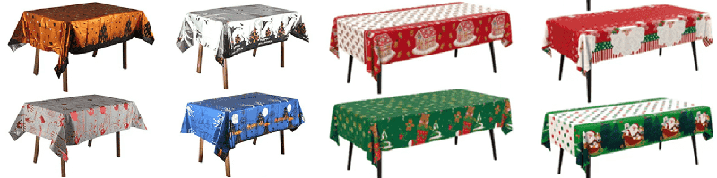 Par exemple, la correspondance des couleurs rouge et verte du thème de Noël, la nappe en aluminium avec un motif d'arbre de Noël et de flocon de neige, la correspondance des couleurs noir et orange du thème d'Halloween avec un motif de citrouille et de chauve-souris, et la correspondance des couleurs rouge et or du thème de la Fête du Printemps avec des personnages porte-bonheur et un motif de lanterne peuvent être utilisées pour la décoration de bureau de vacances des maisons, des centres commerciaux, des bars, des restaurants et d'autres lieux.