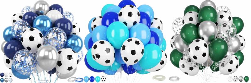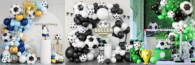 1. Lorsque vous personnalisez les kits de ballons, vous pouvez simplement utiliser des ballons de couleur verte ou bleue et en mettreballons imprimés de football, il s'avère alors être un très joli ensemble comme l'image ci-dessous :
