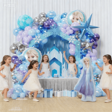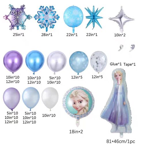 Ensemble d'arche de ballons sur le thème de La Reine des Neiges, produit de style Disney, apprécié par les enfants et les adultes du monde entier.