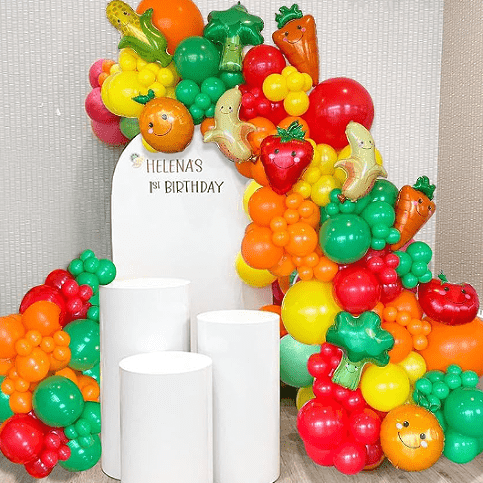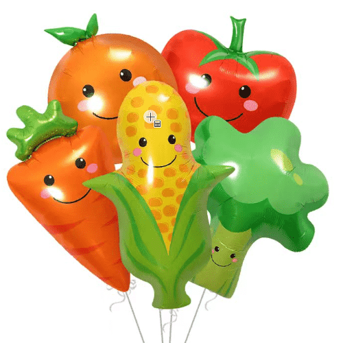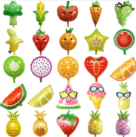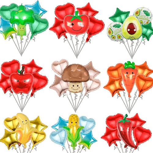 Les ballons de fruits et légumes sont parfaits pour les fêtes d'anniversaire, les décorations d'anniversaire, les décorations de mariage, les soirées cosplay, les fêtes de bébé, les fêtes de filles et les décorations de fêtes de fruits ! Ces ballons sont non seulement parfaits pour la décoration, mais servent également de magnifiques accessoires photo. Imaginez que vous puissiez prendre de jolies photos de filles d'anniversaire avec ces ballons de fruits et légumes. Le souvenir de ces photographies sera chéri dans les années à venir. Les ballons en aluminium pour fruits et légumes sont généralement constitués d'un film d'aluminium, qui est plus résistant que les ballons en latex ordinaires, n'est pas facile à briser, possède de bonnes propriétés de rétention d'air et peut maintenir un état gonflé pendant longtemps. Il existe différentes formes de fruits et légumes, telles que la pastèque ronde, la fraise, la banane courbée, l'orange ovale, le kiwi, la carotte, le maïs, le brocoli et d'autres formes de légumes.