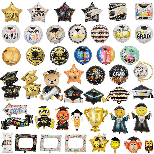 Afin de célébrer la cérémonie de remise des diplômes de la majorité des étudiants, notre usine a spécialement introduit unballon en aluminium pour remise des diplômes. Ce ballon en aluminium adopte une technologie de production avancée et est fabriqué à partir d'un matériau en feuille d'aluminium de haute qualité. Ce ballon en aluminium de remise de diplôme a une variété de styles, avec des étoiles, des ballons ronds en aluminium imprimés, des casquettes de remise de diplôme, des trophées et d'autres ballons en aluminium. Il correspond non seulement au thème de la remise des diplômes, mais correspond également aux couleurs vives, ce qui peut ajouter une atmosphère festive et est profondément apprécié par les gens. Ces ballons en aluminium pour fête de remise de diplômes sont conçus avec des valves auto-obturantes pour garantir un effet serré ou flottant. Il y a également un petit trou dans la partie supérieure du ballon afin qu'il puisse être facilement connecté en série et collé ou accroché au mur. Afin de répondre aux besoins de tous les diplômés, notre usine propose également ce petit ensemble de ballons en aluminium de remise de diplôme, une guirlande de ballons avec un ballon en aluminium de remise de diplôme, etc., qui peuvent répondre à vos besoins de différentes tailles de lieux et sont des accessoires nécessaires pour décorer les cérémonies de remise des diplômes et s'amuser.