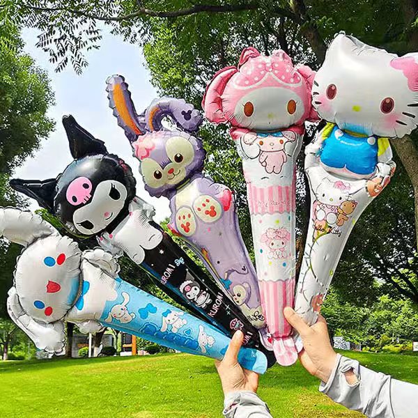La taille est disponible en 18 pouces et 22 pouces. Le poids de 18 pouces n'est que de 20 g. Les enfants le tiennent sans pression et conviennent aux fêtes d'anniversaire et aux activités de la maternelle. L'impact visuel de 22 pouces est fort et peut être utilisé comme élément décoratif dans le paradis des enfants et dans les zones parents-enfants des centres commerciaux. La poignée est fabriquée en matériau PP antidérapant et le joint est renforcé, ce qui peut supporter une force de traction de 5 kg, résolvant ainsi le problème de chute facile du ballon.