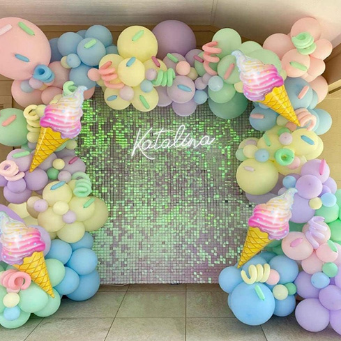 La Niun® Balloon Factory fournit un service de personnalisation Garland Arch Free Balloon. Dites-nous simplement votre concept de logo et de conception d'image, et nous créerons un paquet Garland Balloon Garland macaron de crème glacée qui vous appartient. Notre équipe de conception professionnelle l'optimisera et commencera la production jusqu'à ce que le client soit satisfait.