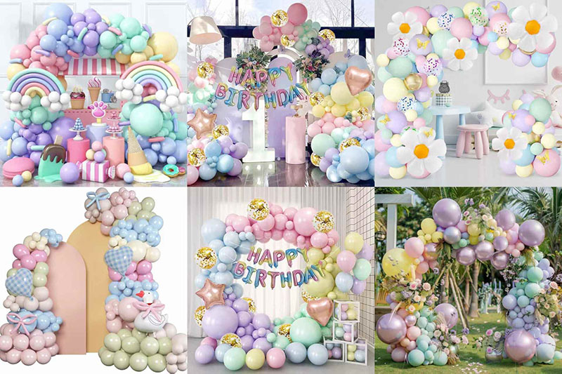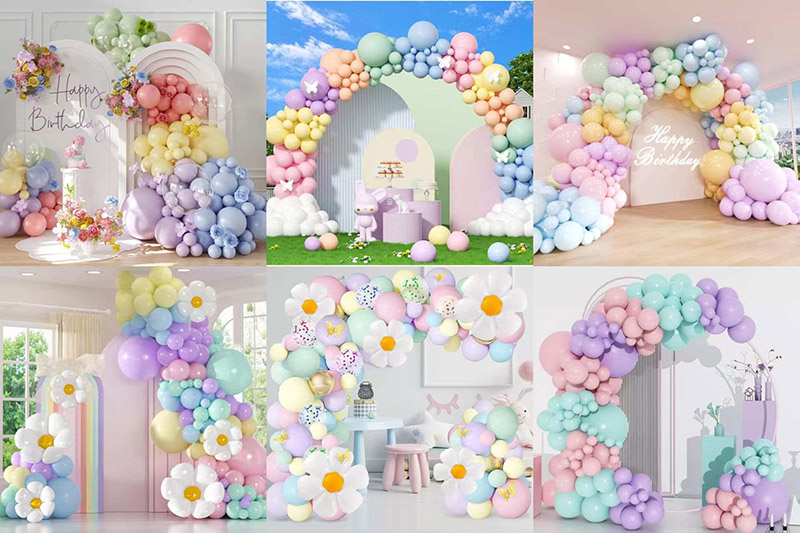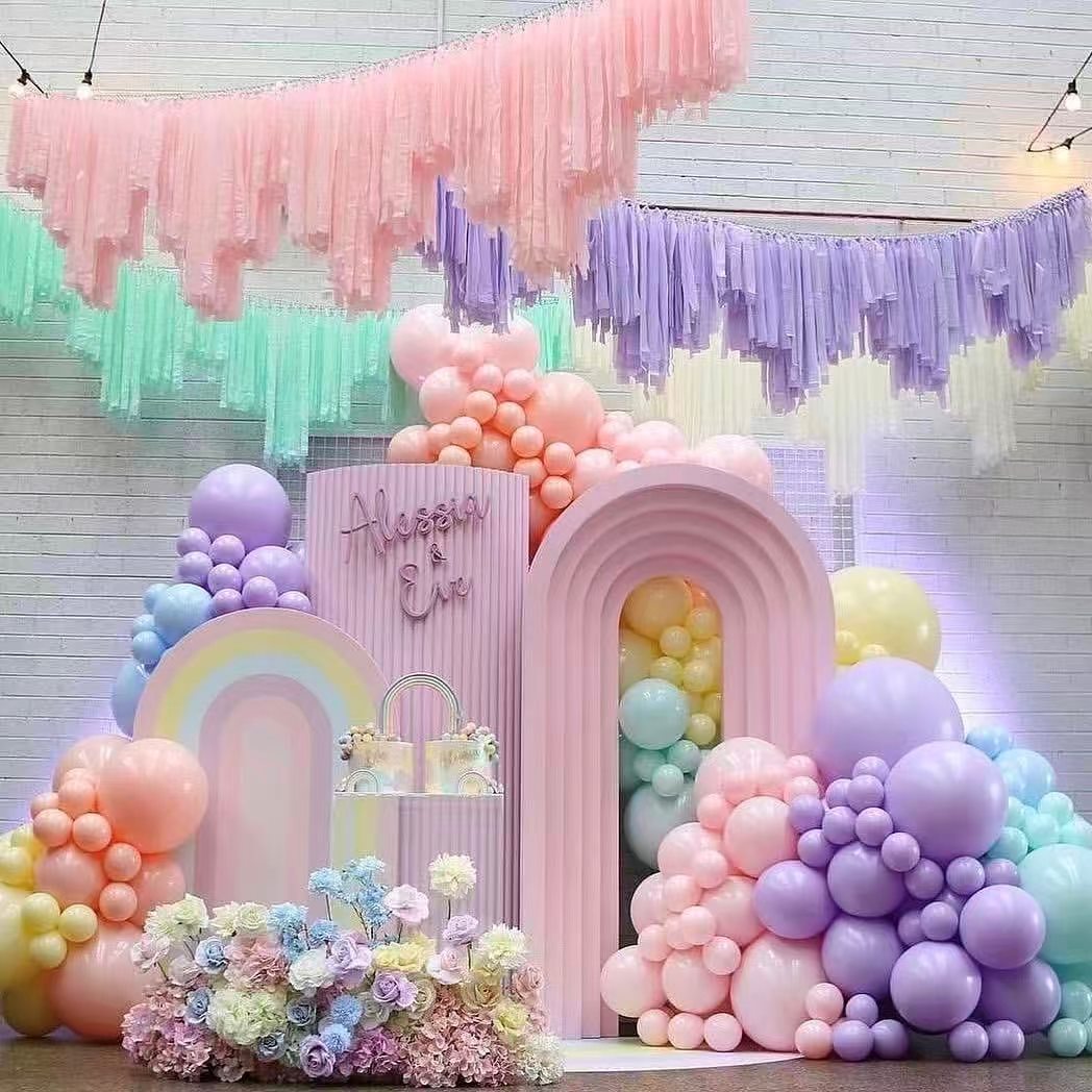 L'arche de guirlande de ballons Party Macaron est très flexible. Différentes combinaisons peuvent montrer de nombreux styles de décoration.