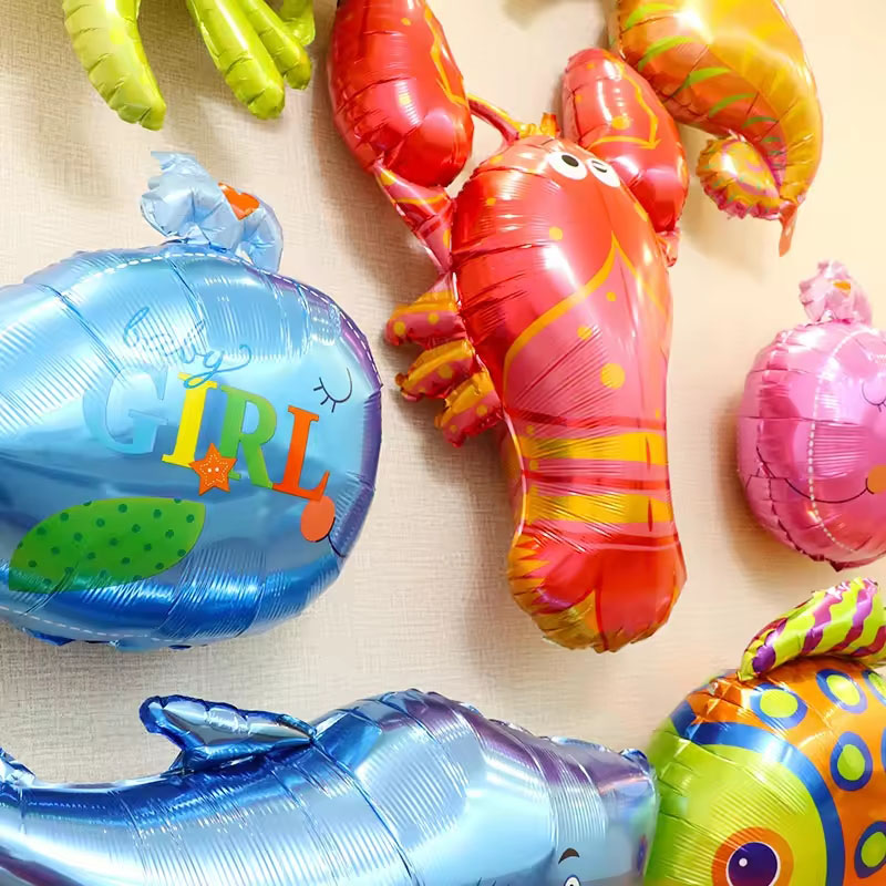 Les ballons en aluminium de la vie marine sont un nouveau produit de ballon lancé par l'usine de ballons NiuN®. Ce ballon en aluminium représentant la vie marine a une grande variété de couleurs. Il existe plus de 50 types de ballons en aluminium tels que des dauphins, des homards, des poissons-clowns, des hippocampes, des crabes, etc. Si vous avez d'autres styles de ballons en aluminium de la vie marine que vous souhaitez acheter et que nos images ne les couvrent pas, vous pouvez nous envoyer des photos ou des dessins. Nous sommes très heureux de personnaliser vos ballons en aluminium exclusifs pour vous. Nous pensons que qu'il s'agisse d'une fête, d'une célébration ou de toute autre occasion, ces ballons en aluminium colorés et ravissants de la série vie marine peuvent ajouter une atmosphère particulière à votre événement. L'usine de ballons NiuN® s'engage à fournir des produits et services de la meilleure qualité à nos clients. Nous pensons que grâce à nos services personnalisés, vous pourrez obtenir une décoration unique sur le thème marin pour rendre votre événement plus mémorable.