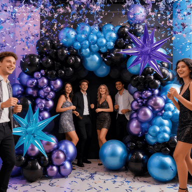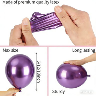 Kit guirlande de ballons bleu violet métalliséest un style très populaire avec sa surface métallique brillante. Il convient pour les fêtes d'anniversaire, les soirées disco, les événements musicaux, les événements cinématographiques et autres occasions. Que ce soit pour les adultes et les enfants, ce kit attirera leur attention.