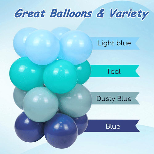 Le kit d'arche de ballons Ocean Party se compose principalement deballons en latexet des ballons en aluminium océanique. Pour répondre au thème de l'océan, les ballons en latex sont principalement de différentes couleurs bleues. Leurs tailles sont de 5 pouces, 10 pouces, 12 pouces et 18 pouces, les différentes tailles peuvent créer des couches belles et attrayantes.