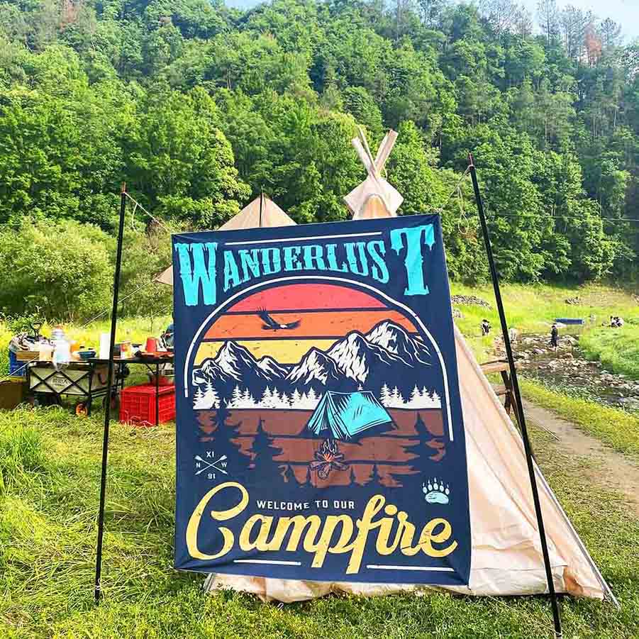 Lors du camping, il peut être suspendu devant une tente ou sous une verrière, servant de toile de fond pour les rassemblements et les jeux. Le matériau résiste à la rosée et à l'humidité de l'herbe, et lorsqu'il est plié, il n'a que la taille d'une feuille de papier A4, ce qui le rend léger et facile à transporter. Pour les marchés culturels et créatifs du week-end, des ateliers d'artisanat communautaire et d'autres activités, la toile de fond du groupe peut être personnalisée avec des thèmes du marché et des horaires d'événements. Fabriqué en polyester 100D, il est résistant au soleil et ne s'estompe pas même en lumière directe du soleil.