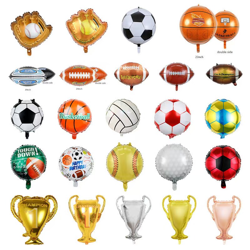 Le design couvre la modélisation d'équipements sportifs, le basket-ball, le football, les haltères, les trophées, les silhouettes de figures sportives, « WIN », « GOAL » et « CHAMPION » et d'autres lettres d'incitation. Un seul ballon de grande taille (18 à 36 pouces) ne nécessite pas d'appariement compliqué et peut devenir le centre visuel lorsqu'il est accroché au centre ou à l'entrée de l'activité. Il est particulièrement adapté aux scènes telles que les acclamations d'événements à grande échelle, les activités sportives de plein air et les jeux sportifs sur le campus, enflammant instantanément l'enthousiasme de la scène.