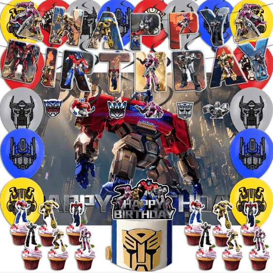 Combinaison classique : ballon en aluminium Transformers avec drapeau à thème de ballon en latex coloré, ballon en latex comme base, ballon en aluminium comme noyau visuel, drapeau comme décoration à thème, adapté pour les fêtes d'anniversaire, les célébrations de festival de la disposition de base.