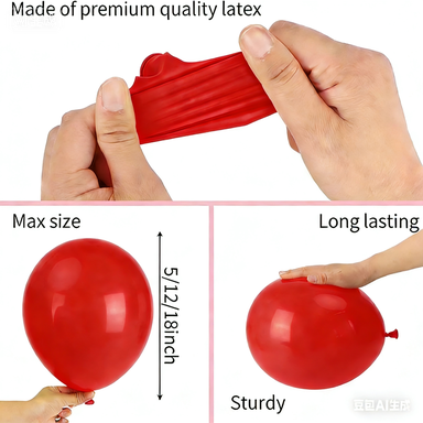 Ce kit de ballons est principalement composé deballons en latexet plusieursballon en aluminium. Leurs ballons en latex sont de couleurs rouge, rose et blanche. Ils sont fabriqués à partir de latex 100% naturel, totalement écologique et inoffensif pour le corps humain. Et leur taille est également variée. Afin de créer une belle couche, les tailles de ballons en latex vont de 5 pouces à 12 pouces. Les disposer dans le set est très simple, nous préparons également la colle à points et la chaîne de ballons avec. Ainsi, tout en l'organisant, vous pouvez le faire avec flexibilité.