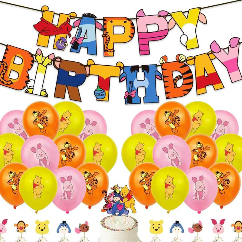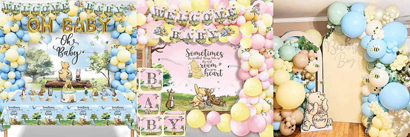 Le style se concentre sur la propriété intellectuelle classique de Winnie l'ourson. Il mélange des images de nombreux amis mignons. Ces amis incluent Tigrou et Porcinet. Il s'accorde avec des ballons aux couleurs fraîches de macaron. Les couleurs sont le bleu tendre, le rose, le jaune, le vert, etc. C'est bon pour les fêtes de bébés garçons. C'est également bon pour les fêtes de bébés filles. Vous pouvez trouver un style de couleur qui vous convient. Par exemple, la série bleue montre la vitalité ensoleillée des garçons. La série rose est pleine de douceur et de gentillesse des filles.